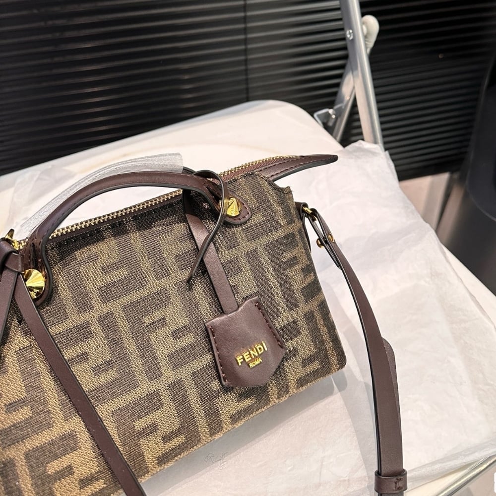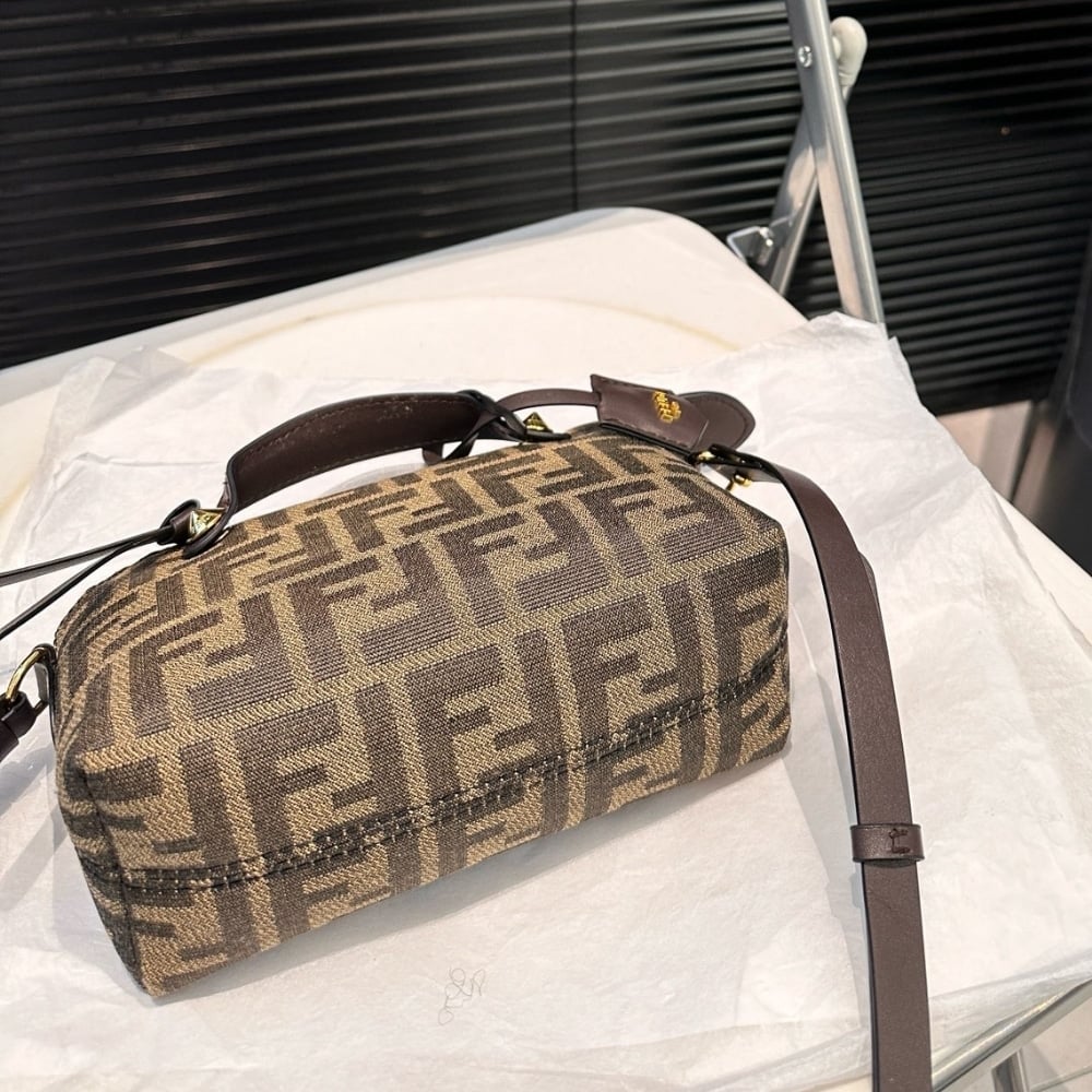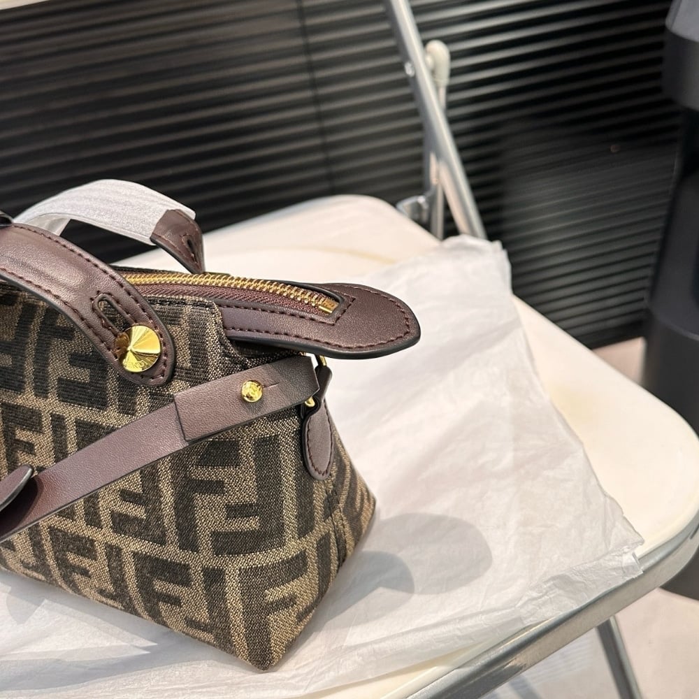 Fendi By The Way Soft Medium Brown Ff Jacquard Fabric Bag 27Cm