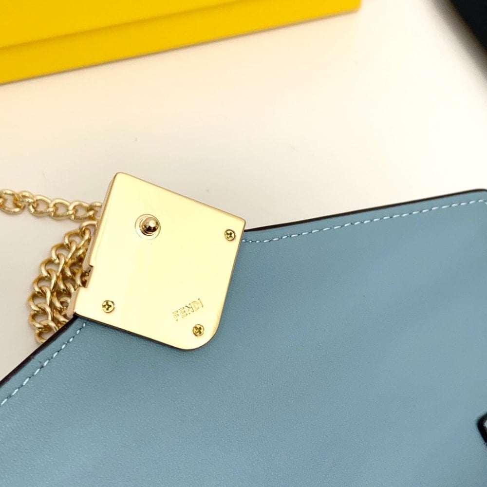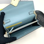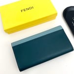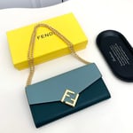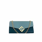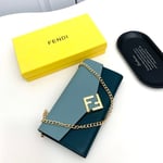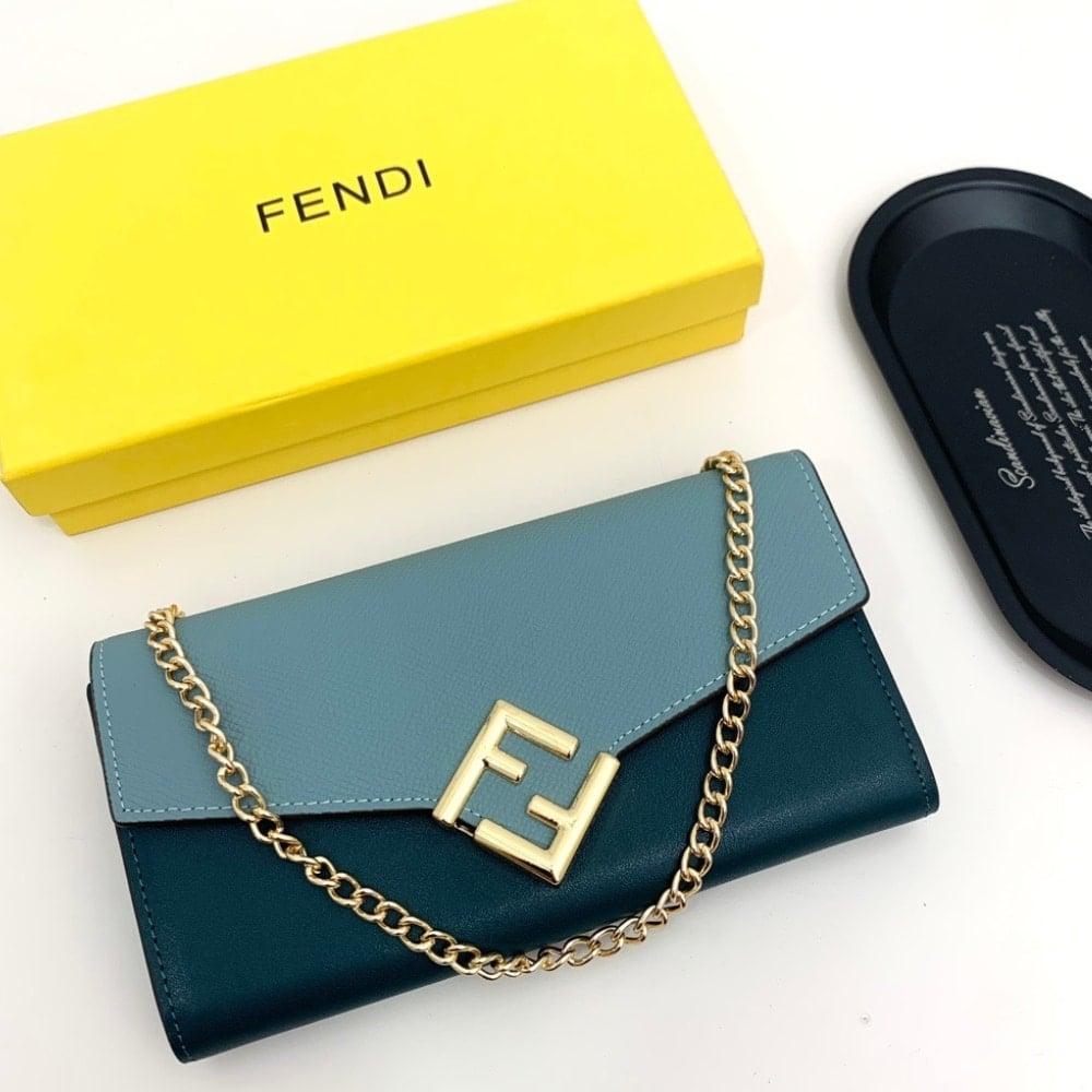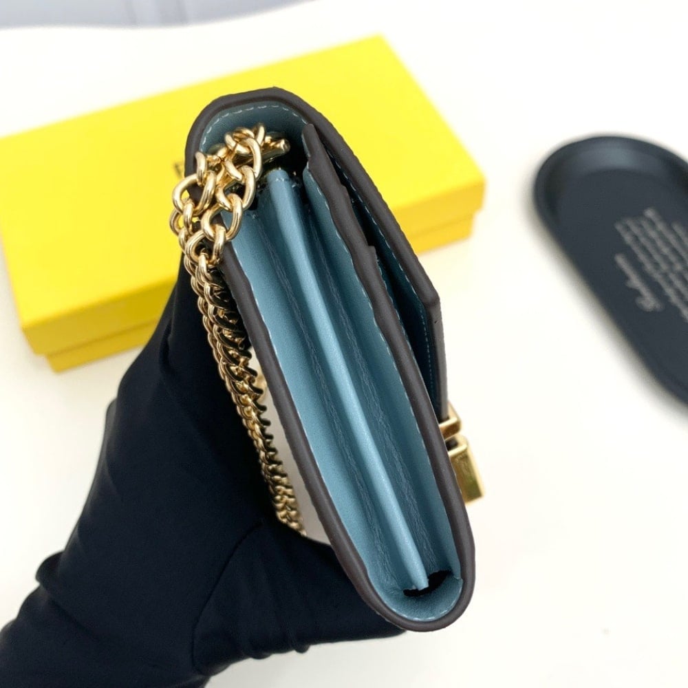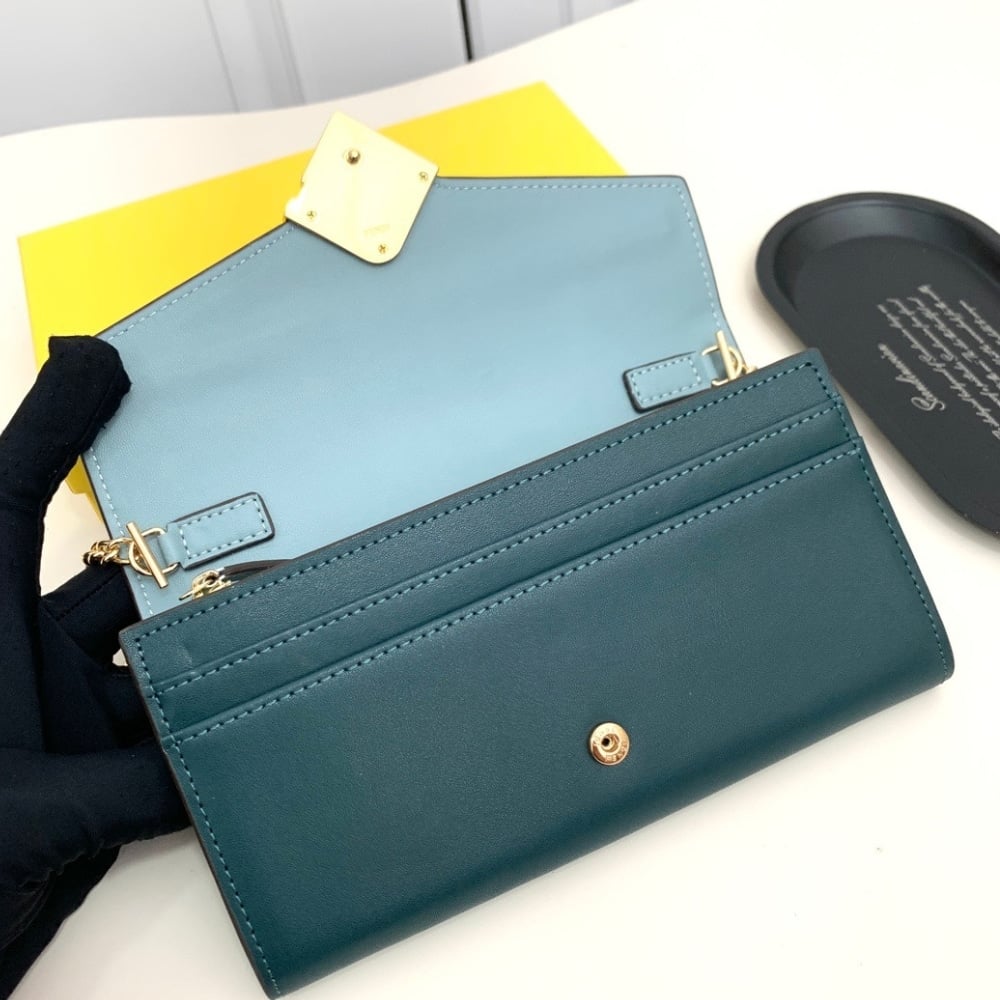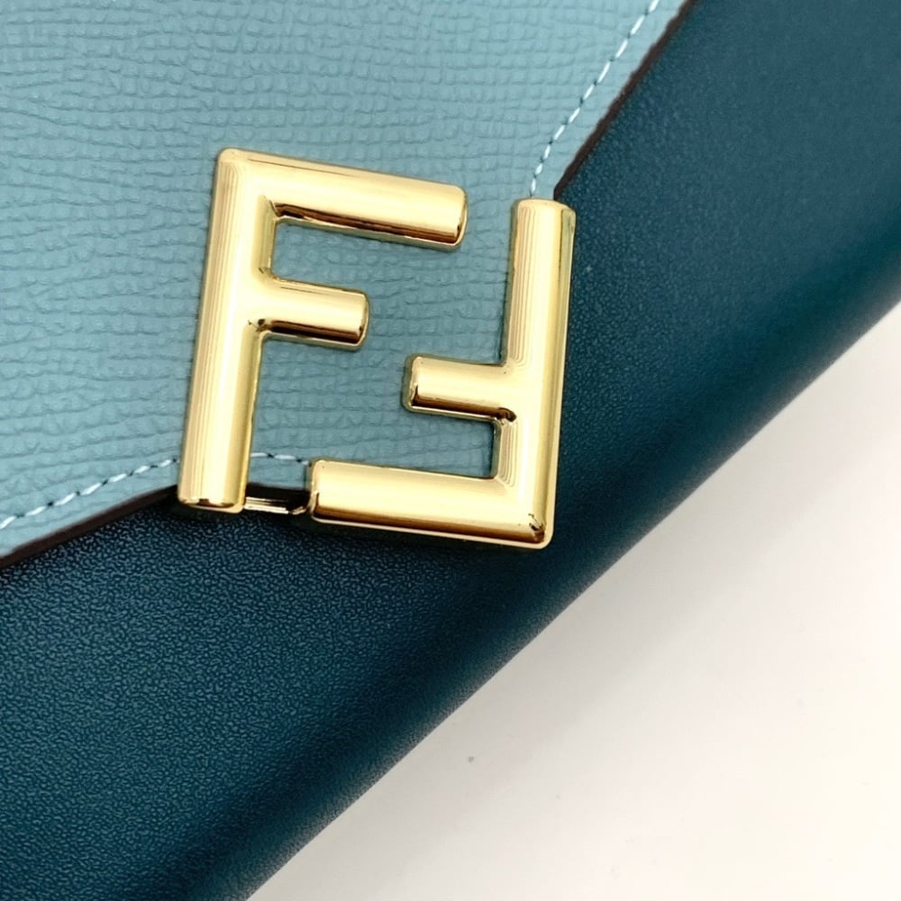 Fendi Ff Diamonds Continental With Chain Leather Wallet Green Blue 19Cm