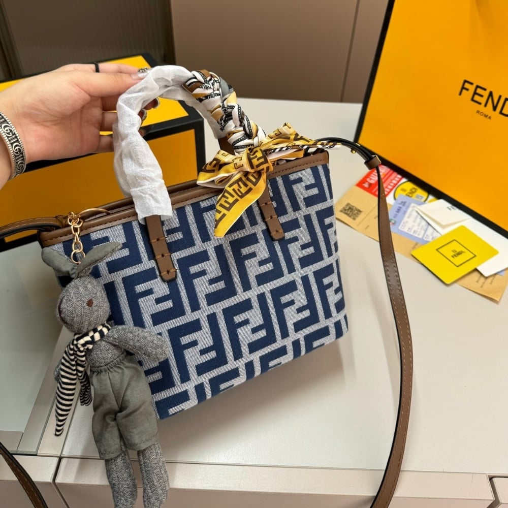 Fendi Mini Roll Ff Jacquard Mini Bag Midnight Blue 18Cm