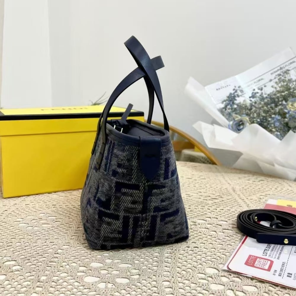 Fendi Roll Mini Ff Chenille Bag Dark Blue 16Cm