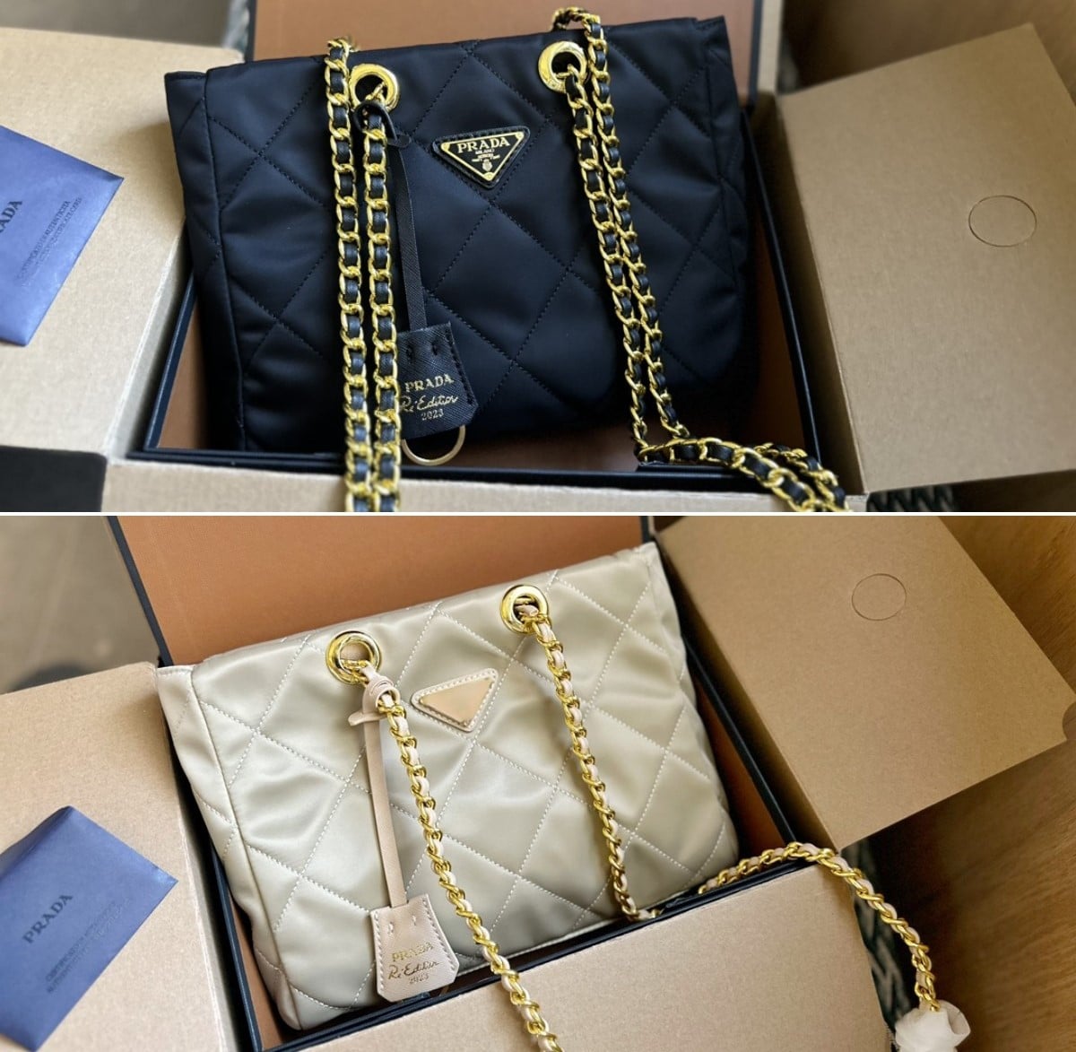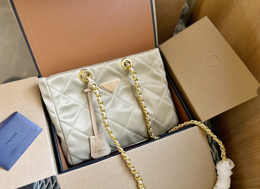 Prada Re Edition 1995 Chaîne Re Nylon Tote Bag Beige 27Cm
