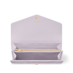 The Sarah wallet is updated for the season in a pastel palette, lending a playful spin to any accessories collection. It is made from signature leather and is adorned with gold-toned hardware for a subtle finish. The compact design reveals two large gusseted compartments inside, and is fitted with two further pockets and 16 card slots.