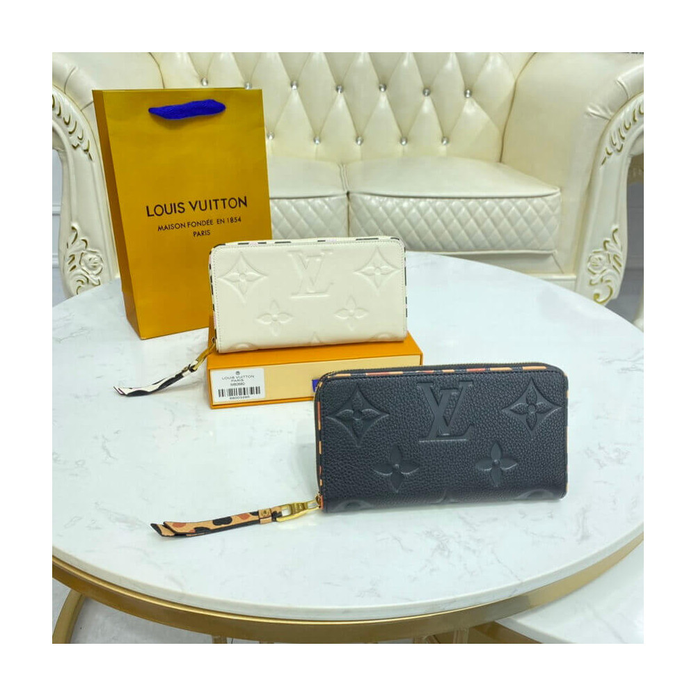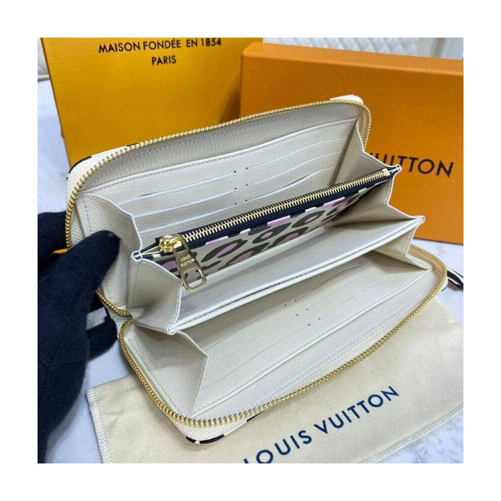 Home Shop Wallets LV Wallets Louis Vuitton Monogram Empreinte Leather with Animal-Print Zippy Wallet Cream