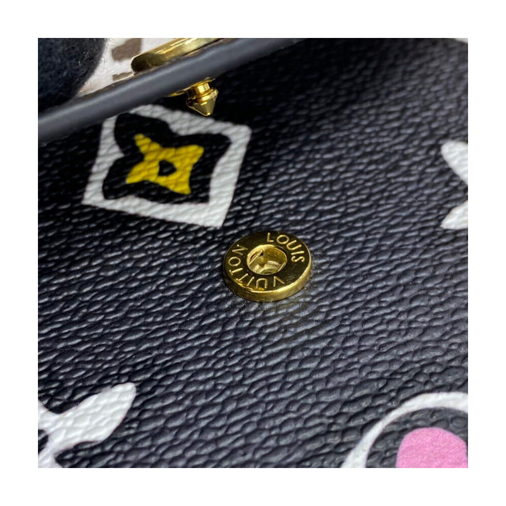 For the Wild at Heart special edition, the Rosalie coin purse comes in a revisited version of Monogram canvas, inspired by animal print. This tiny purse features a rounded flap secured by a gold-tone, Louis Vuitton-engraved press-stud. As well as a zipped pocket for coins, it offers a flat pocket and two card slots.