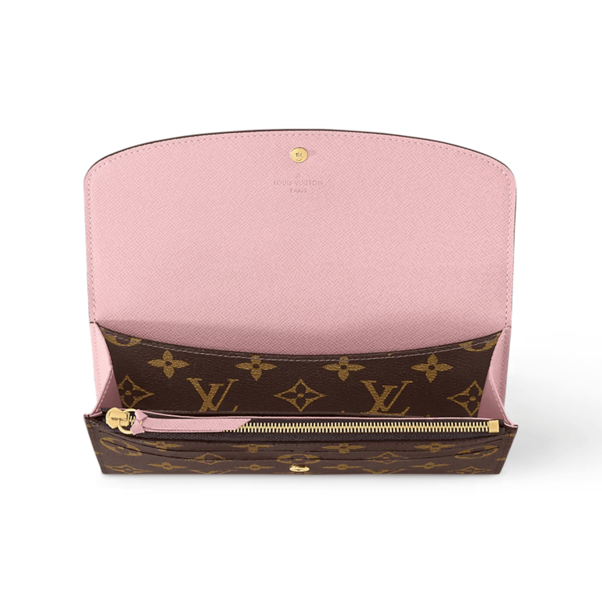 Proving that functionality and beautiful design can go together, the Emilie Wallet is elegance itself in supple Monogram canvas with a fresh lining color. Numerous pockets and an attractive shape make it irresistible.